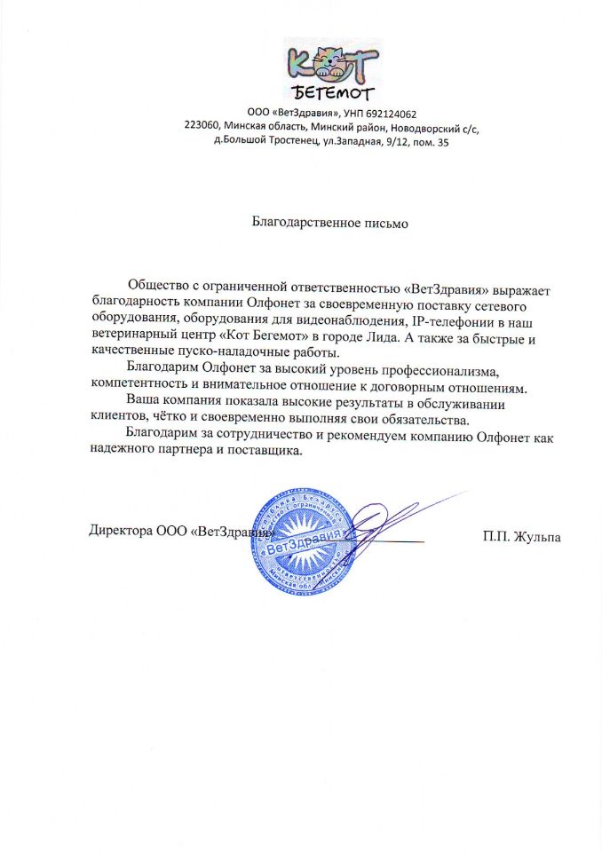 Гарантийные обязательства на оборудование до 3-х лет, на услуги от 3 месяцев до года